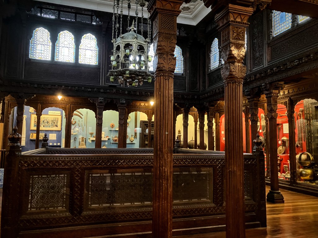 I visited the Hastings museum a few weeks ago. I had been to Hastings on a number of occasions but I hadn’t been to the museum, which was a big loss actually because it’s quite a wonderful space. The upper level Walkway Gallery leads to the most incredible room, The Durbar Hall, which hosts an amazing collection of artefacts. The carved and panelled wooden Durbar Hall was constructed by Indian master-craftsmen for the 1886 Colonial & Indian Exhibition in London and removed by the Brassey family, which is how it came to be part of the Museum.