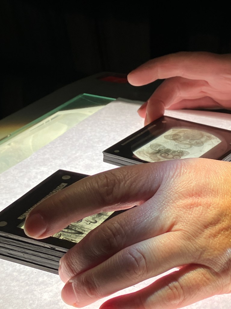 Together with my friend, we experimented with layering the slides and creating strange and interesting combinations, as the glass layers added different scintillations and textures, creating a range of illusions.