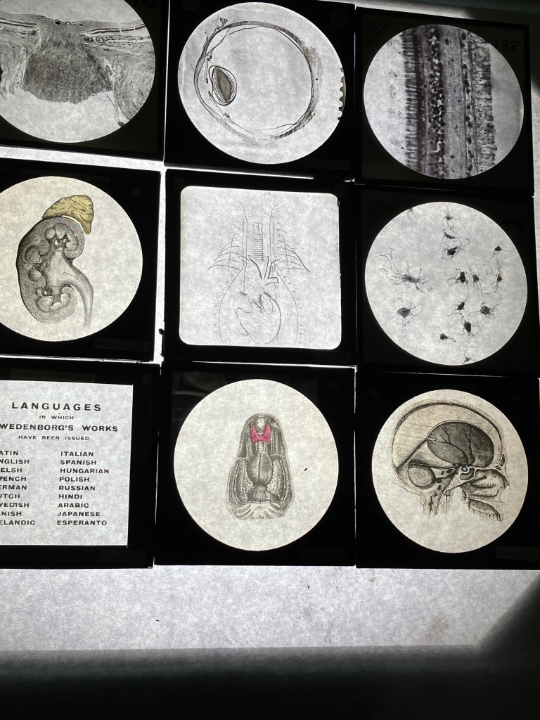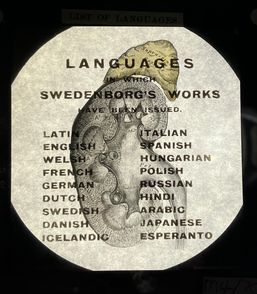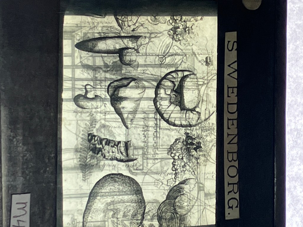 Swedenborg House in Bloomsbury has a large collection of magic lantern slides from the early 20thC. They contain documentary material of Swedenborg’s re-interrment on the 140th anniversary of his death, in 1912/1913, when his remains were transferred from London to Uppsala Cathedral in Sweden. There are also many portraits of Swedenborg taken form paintings and busts. In addition, I found two boxes of diagrams and drawings taken from his books.