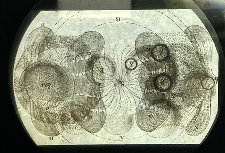 On the surface of it, nothing. It’s simply technology. However as we’ve seen with (possibly) Villeneuve and certainly Della Porta, projections can have magical qualities. Tricking the eye to see the immaterial was among the skills of the celebrated magicians of yore. I would argue that the manifesting of illusions in this way has unimportant role in reminding us that ‘real’ is so subjective. The projected image seems ‘real’ and in a sense it is, it’s a real image, but then what is the image? It is not the thing projected, is it? The image is not the slide. Yet the image has no material existence. It exists because of the convergent relationship between the eye and the light, with the glass plate intervening. We’re so used to seeing images on screens now that we forget that seeing images that have no materiality is very very recent in human history. Even two hundred years ago, such images were astounding and unusual and still redolent of magic.