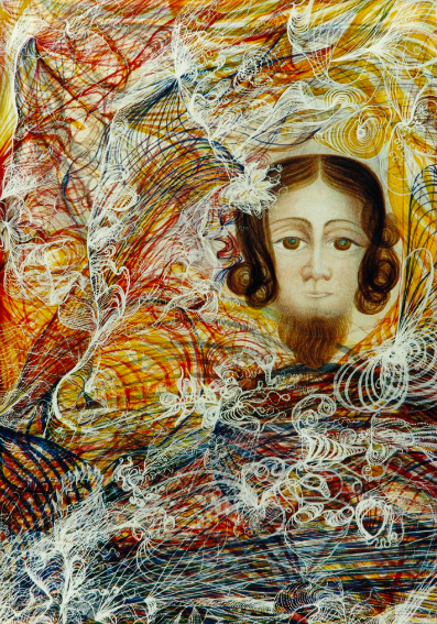 Spiritual art (or “spirit art”) is the practice of invoking metaphysical creatures to inspire and aid in the creation of art. The College has numerous distinct examples in their collection.