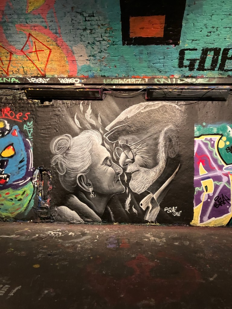 Every time I visit Leake Street even if only a week or two passes between visits there’s always something new and over the course of the year or a season the tunnel constantly shifts and changes as old pictures disappear under or incorporated into new ones
