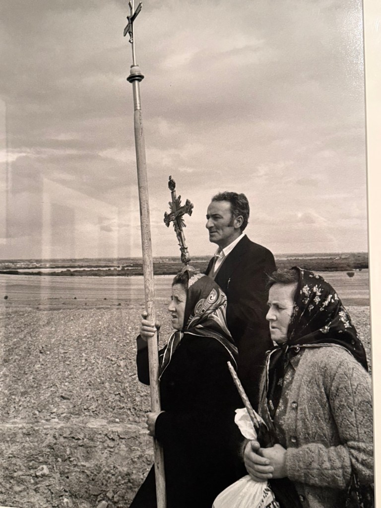 This photograph above is taken in an extremely rural area called La Valduerna in the north of Spain. a quick look online showed me that it looks pretty much now the same as it did in 1981: vast flat landscape of countryside. It is obviously a wholly agricultural area and so it makes sense that these villagers are taking part in a rain prayer, a ritual that is absolutely timeless and goes back to the very beginnings of human history – calling forth the rain. The Native Americans perform the rain dance; the Jews have a prayer.’Mashiv HaRach U’Morid HaGashem’ In Islam it is known as ‘Salat al-Istisqa’. By the Catholic Christians it is called Rogation . But of course it has its roots in the most ancient traditions. It begins with a supplication, then an intercession asking some kind of holy figure or saint or God to pray for rain on your behalf and there is very often a ritual, as we can see with these crosses.